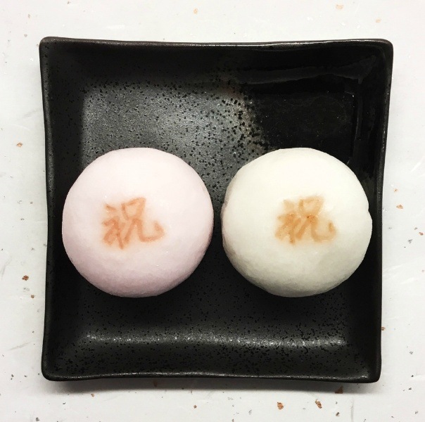 薯蕷饅頭に【祝】の焼印をお入れさせて頂きます。