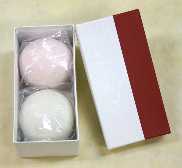 商品名:七五三の紅白薯蕷セット(焼き印)・2個入り(4寸5分)