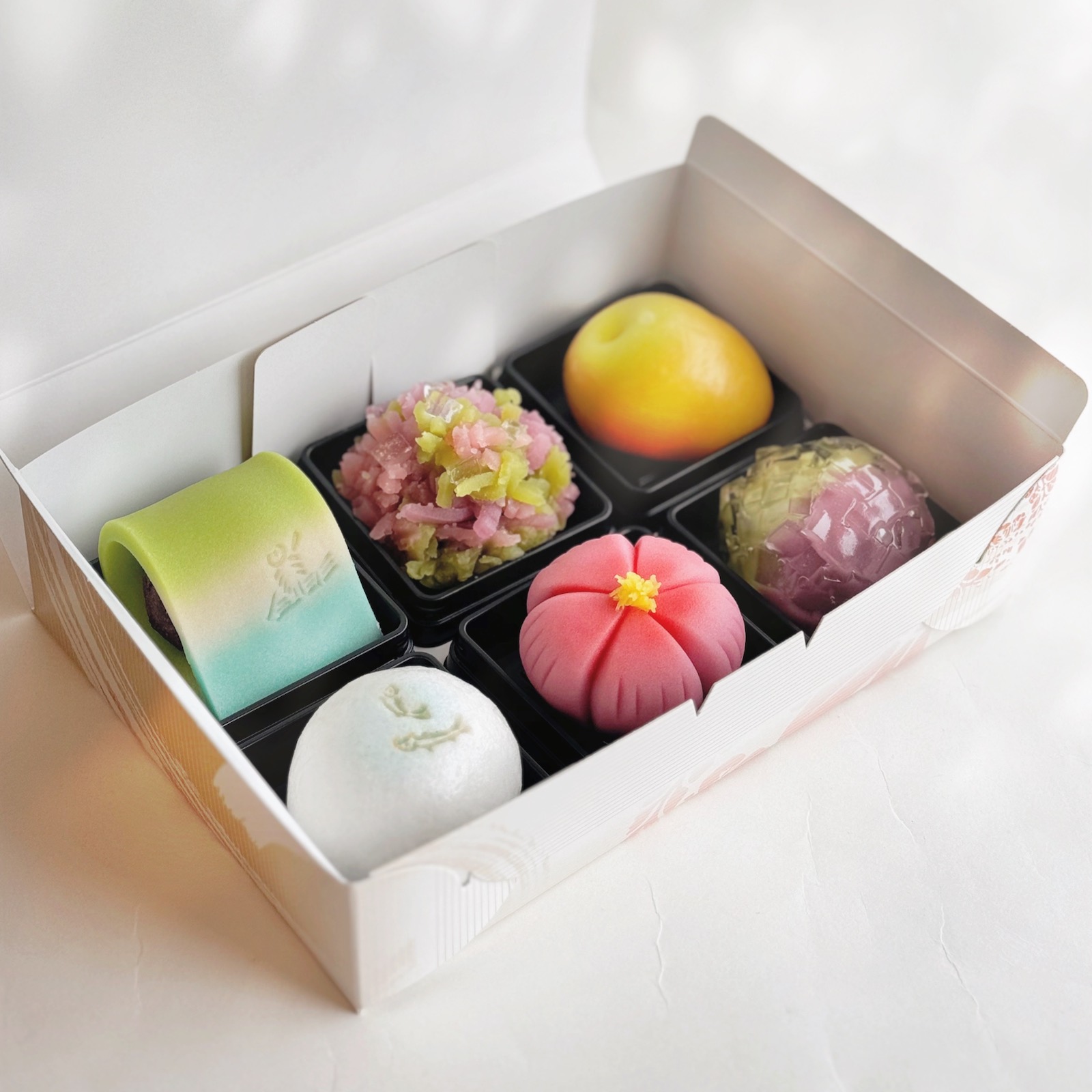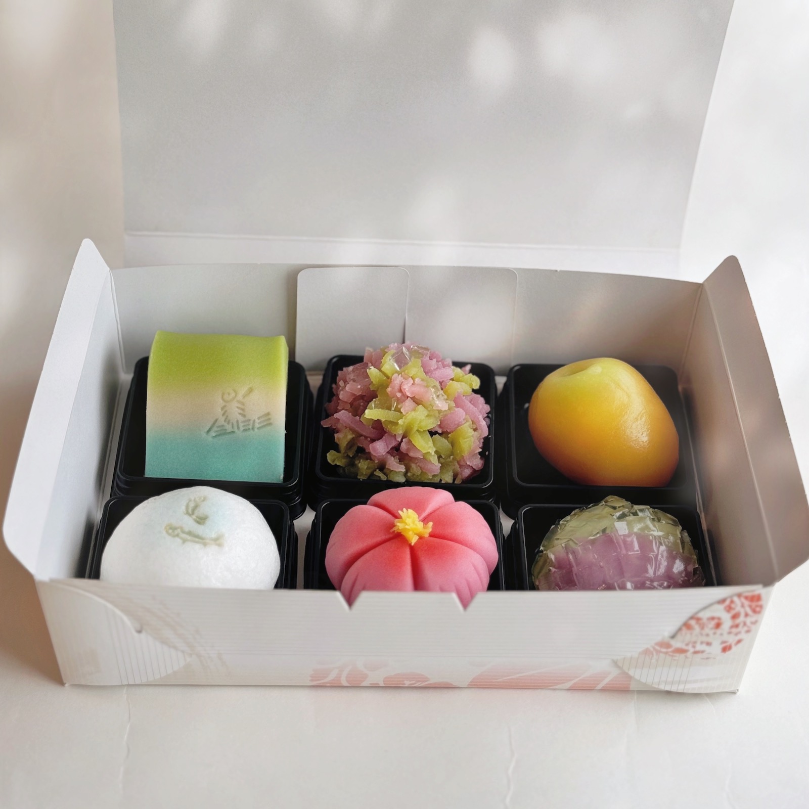 季節の上生菓子はおまかせで彩りよくお詰めさせて頂きます。