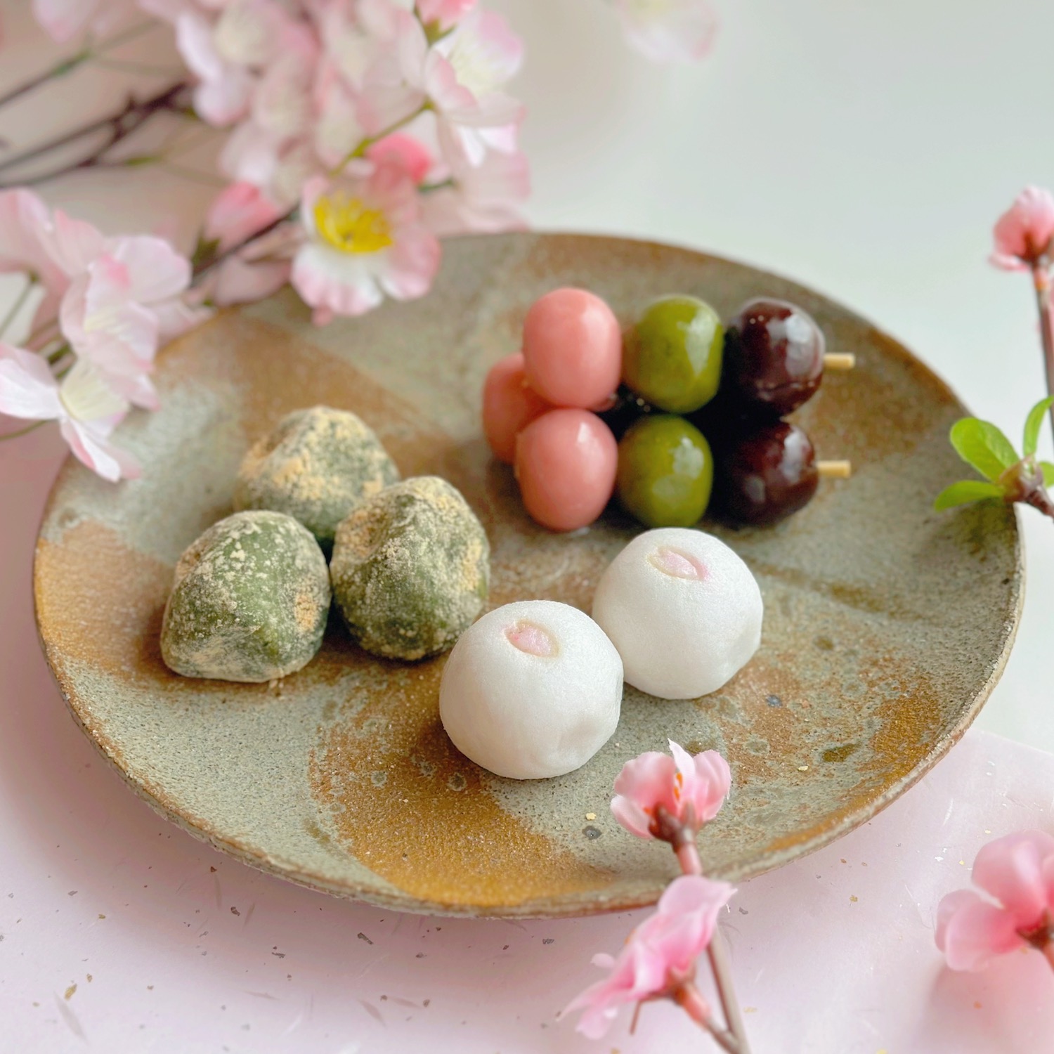 「花さそう」3個・・・・練切餡と抹茶餡と黒砂糖餡で出来ております。