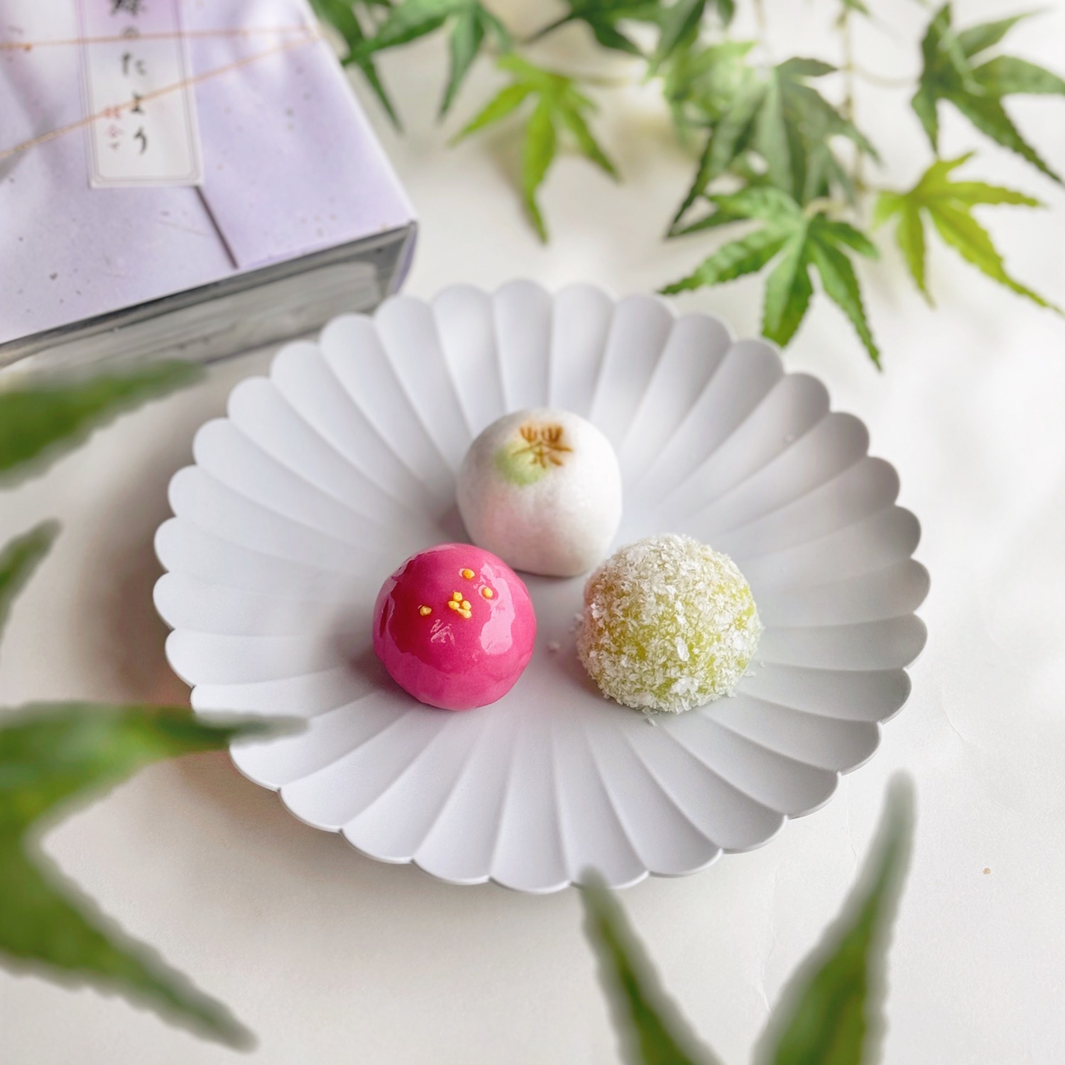 爽やかな新緑の季節にぴったりの風味の3種類の生菓子。