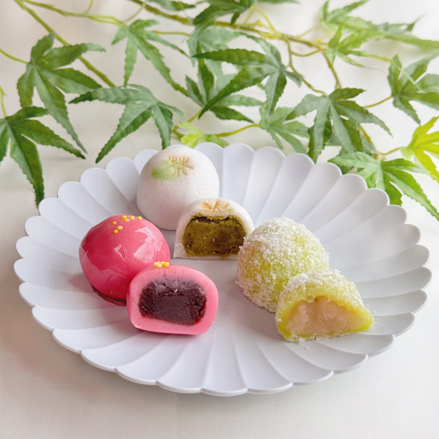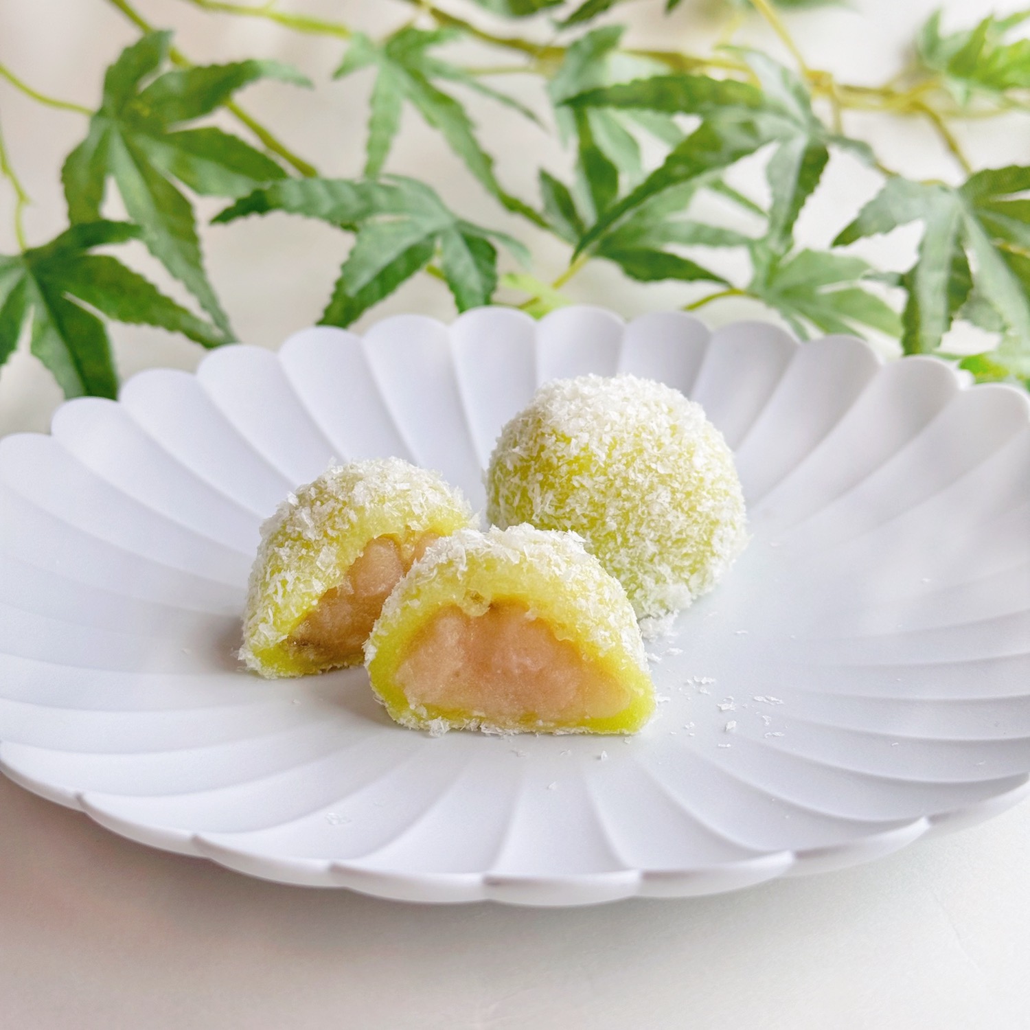 ●「青梅の里(青梅あん)」…青梅の実が入ったあんを求肥で包みました。爽やかな青梅の風味がお口に広がります。
