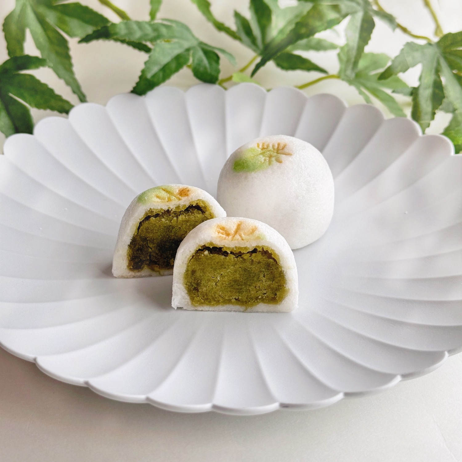 ●「抹茶薯蕷(抹茶あん)」…この時期が旬の新茶。抹茶あんを薯蕷で包みました。
