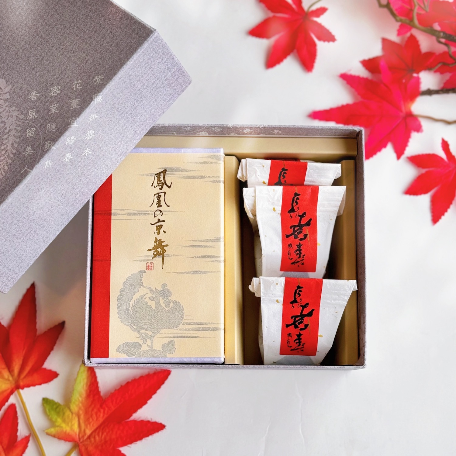 棹菓子は「鳳凰の京舞」「藤花文」「東峰」「松の栄」からお選びいただけます。