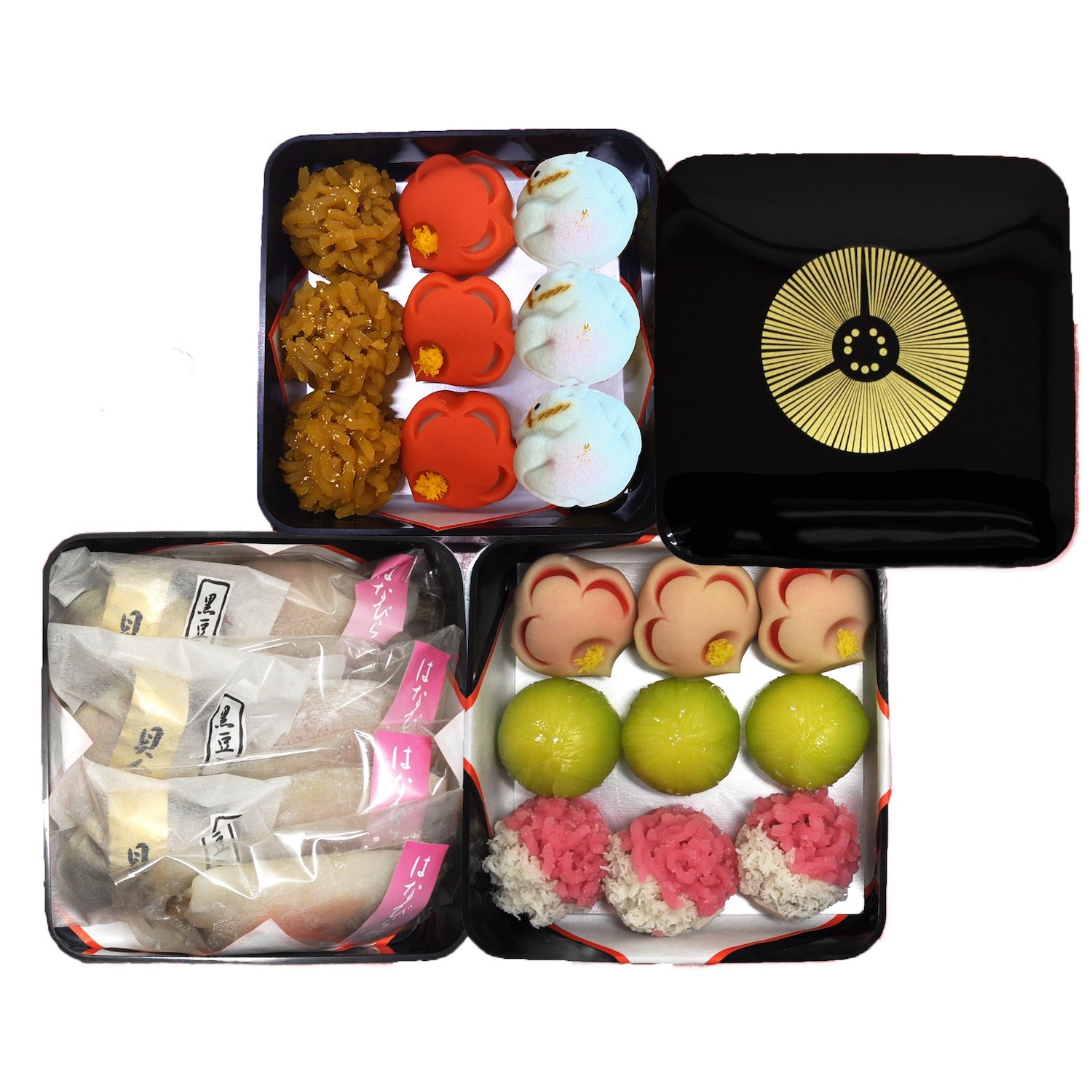 おせち菓子「雪」「梅」「花」の三段重です。
