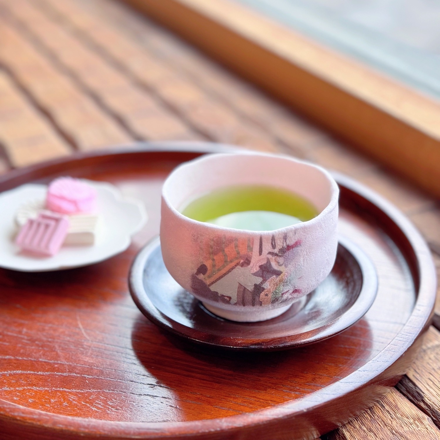 特殊製法でお作りしている、お干菓子でできた”食べられる煎茶碗”です。