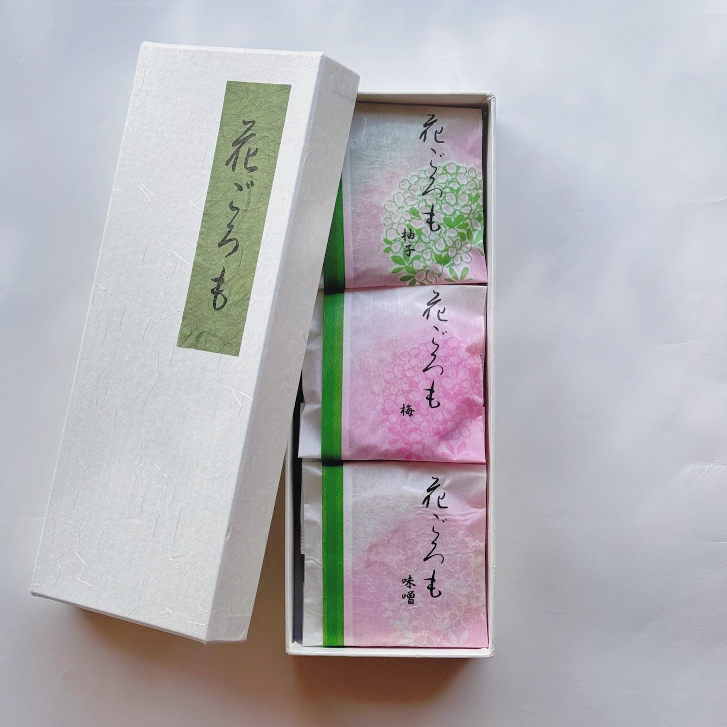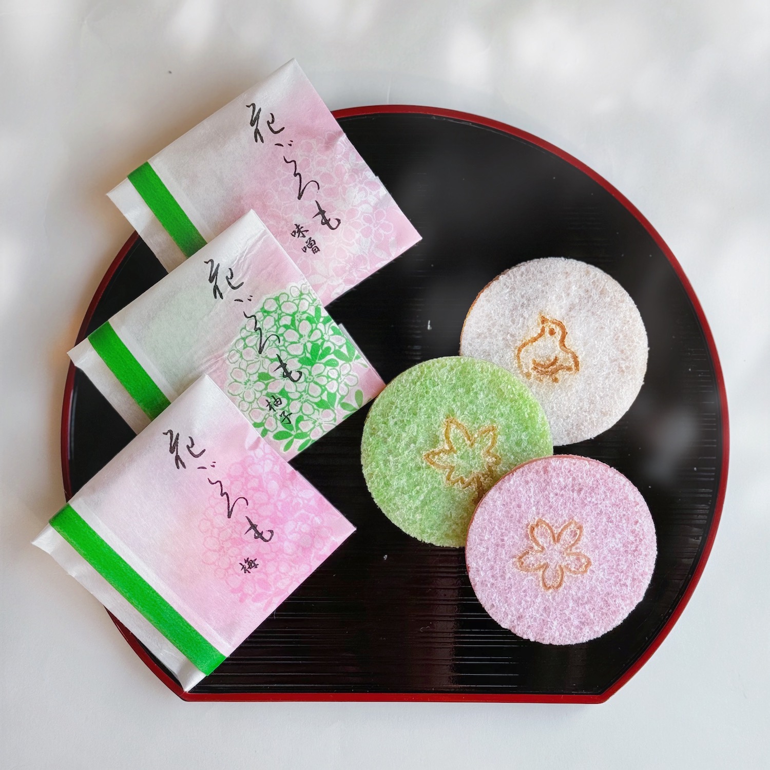 お茶菓子「花ごろも」は、昔ながらの製法による麩焼き煎餅を二枚に切り分け、柚子餡、梅餡、白味噌餡をはさんでおります。うっすらと透けてみえる餡色の如く、ほのかで上品な甘さが抹茶に花を添えます。【内容】・柚子餡×2枚・梅餡×2枚・白味噌餡×2枚